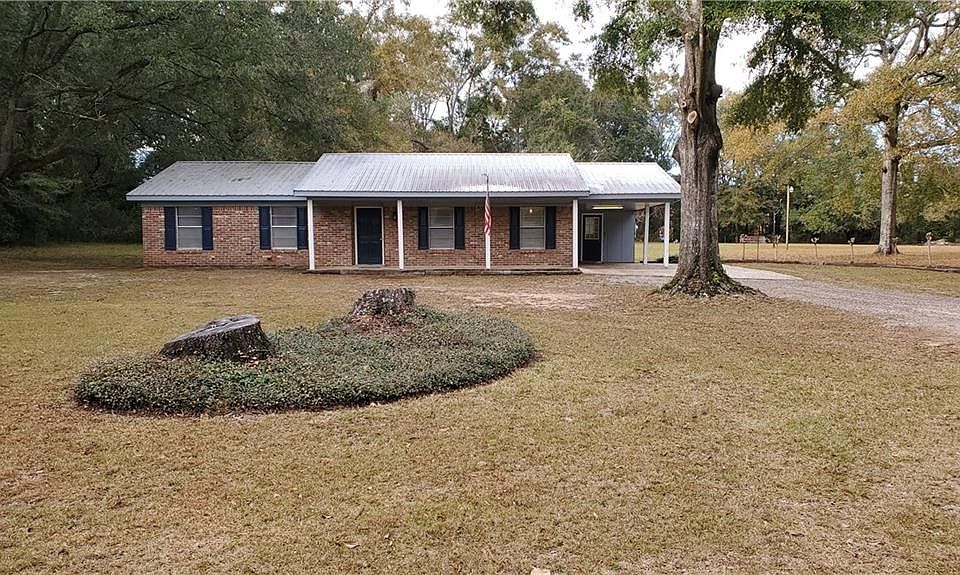 Move in condition and room to stretch. This well maintained 3 bedroom, 2 bath, metal roof, brick home on approximately 2 acres has plenty of room for the growing family or the retired wanting peace and quiet. Possible USDA financing with no down payment! Quick access to Moffett road, local schools or steel plants. Split brick and wood laminate flooring throughout. Open kitchen with plenty of cabinet space and breakfast bar that looks into the den, with a cozy wood burning, metal fireplace insert. Good size master bedroom with double closets and walk-in shower. HVAC replaces +/- 4 years ago. If you work in West Mobile, North Mobile or Miss, this is your place. Easy to show!