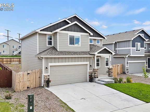 MOVE IN READY! Bring your buyers to this charming two-story story in the popular Lorson Ranch. Ready for move-in two-story, three-bedroom, two-and-a-half bath home. Just minutes from Ft Carson, Schriever, and Peterson. Step onto the hardwood floor entryway that extends through the dining room and kitchen. The convenient island in the kitchen boasts granite countertops accompanying appointed stainless steel appliances. Stock up on your favorite food items in the roomy pantry. This bright open floor plan allows for plenty of natural light and a cheery atmosphere. The neutral colors throughout will go with any decorating plan. The fully fenced backyard will keep your loved ones safe.