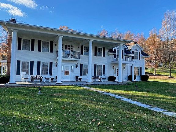 Large white, Historic, colonial, antebellum style mansion reminiscent of Mt. Vernon, on over 10 AC overlooking the Belleville Locks & Dam on the Ohio River... A separate, red 'Party House' with wrap-around deck on the Eastern point, juts out over the Ohio River. And this property shares a driveway with a seprate, matching white Guest House, on an adjacent Parcel owned by the same Owners, located at 66713 S. R. 124, Reedsville, OH 45772.