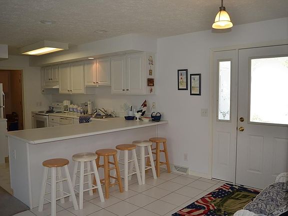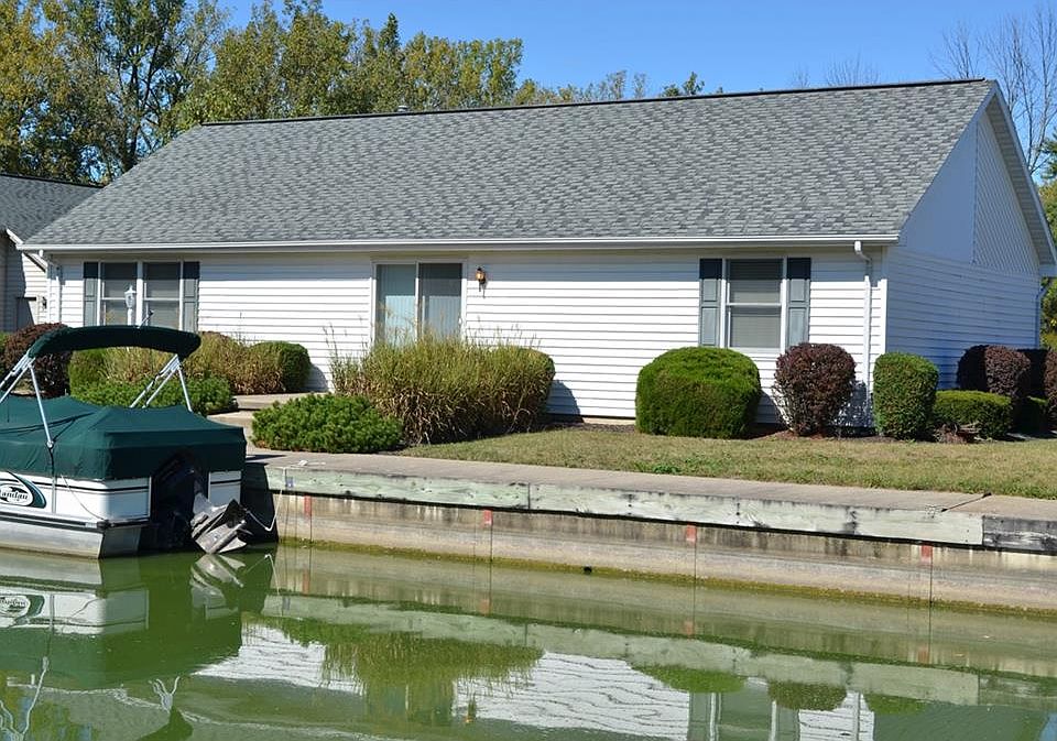 Peaceful, Easy Living...Keyed to convenience floor plan offers all the comforts of home ideally located on cul-de-sac street with channel front. Sunfilled tiled entry offers glimpse of the open living space showcasing breakfast bar seating to the kitchen offering abundant cabinet & counter space plus breakfast nook area. Living/dining room provides walk-out to the patio overlooking water. Split bedrooms boast owner's ste with walk-in closet, double vanity bath with garden tub. +/-26x24 garage provides great space for all the extras. Well maintained and cared for home ready for your new lake memories.