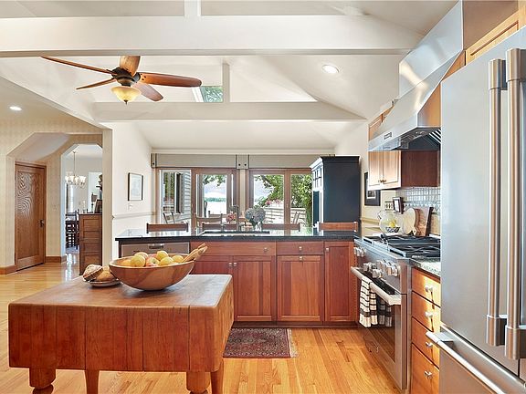 Beautiful Owasco Lake property located on 65' prime lake frontage close to two golf courses, parks and Rev theater. This well maintained colonial offers 4,402 sq. feet of living space including a two-bedroom, one bath finished apartment over the 3 bay garage. Enjoy watching the sunsets and fireworks from your stone patio and seawall. Enjoy morning coffee on your deck surrounded by well maintained landscaping, perennial gardens and arbor. The included dock is perfect for fishing or swimming. Enjoy lake views from the large front living with woodburning fireplace and formal dining areas. The vaulted ceiling updated kitchen offers a lake side eat-in area, granite counters, peninsula and pantry space. There is a TV room adjacent to the kitchen for casual gatherings. A first floor office/bedroom located next to a full bath can easily be converted to an ensuite if needed. Second floor has 4 bedrooms including a lake front primary ensuite. The apartment over the three-bay garage has two bedrooms, full bath, large living area and kitchenette perfect for extra guests.