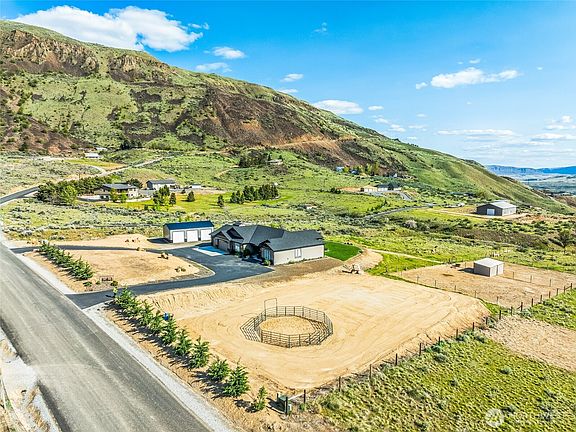 Welcome to this stunning 3-bed + office 2.5-bath estate set on 10 acres of pristine land w/ sweeping views of the mountains and Columbia River. Blending modern comfort with high-end finishes the home features 9-foot ceilings LVP flooring and a primary suite complete with heated tile floors a free-standing soaking tub and a dual rain shower. The chefs kitchen is equipped with custom cabinetry leather-finished granite countertops a Smart Home refrigerator and a spacious butler’s pantry w/ a wet bar. Smart home features include a WiFi-enabled thermostat and a full security system. Outside youll find a 26x40 shop three horse paddocks a fully fenced dog run full backyard irrigation and room to enjoy the outdoors. 5 min to Microsoft and shopping!