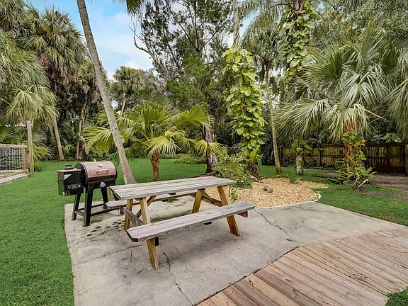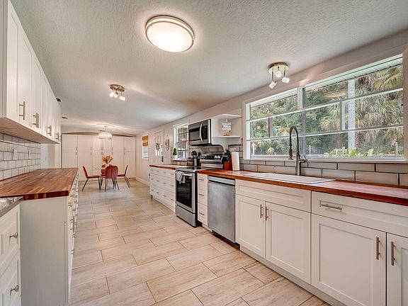 Ask about the interest rate buy down the seller is offering! The kitchen shines with chic glass subway tile backsplash, porcelain tile flooring, and Cherry butcher block countertops. The entire plumbing system has been upgraded, along with a new main breaker and outlets for the electrical system, ensuring peace of mind. A tankless water heater offers endless hot water on demand. Freshly painted interiors and exteriors, along with a brand-new roof installed in 2023, enhance the home's curb appeal. Outside, entertain or relax in your private saltwater pool. The spacious one-acre lot provides ample space for outdoor activities or potential expansion. Additional features include a shed for extra storage and a pool house equipped with electricity, a wine fridge, bar area, and a TV perfect for hosting guests or enjoying your own retreat. Located just minutes from beaches, restaurants, and the airport with no HOA. Schedule a viewing today and make it yours