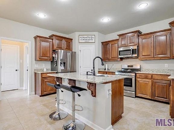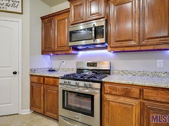 Beautiful 3 BR 2 BA, waterfront, home nestled on a serene and lovely pond. This home has great curb appeal, landscaping and gorgeous sunsets. Kitchen/dining combo featuring gas stove, granite countertops, under counter lighting, large pantry, stained Beechwood cabinets, soft close drawers and eat-in island bar. Flooring--wood, ceramic tile and carpeting. 9 ft+ ceilings, computer nook and security system. LED recessed lighting in living room and kitchen. Ceiling fans throughout the home and on the patio area. Master bath features garden tub, double vanities and large walk-in closet. All blinds to remain. Patio has a gas drop for easy outdoor entertaining. Beautiful and majestic sunsets overlooking the pond make this home a must see. Brusly school district. Convenient to local retail, commercial and restaurants including easy stress-free commuting to the chemical industry corridor on the west side. Call for your showing today.