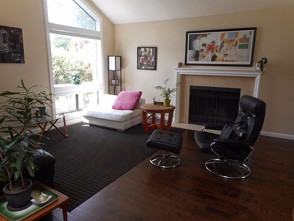 This light filled 4 bedrooms 2 1/2 bath remodeled home has scraped wood laminate flooring throughout all living areas. All bathrooms are tastefully redone along with the kitchen, which has granite counters, stone backsplash, stainless appliances and a ceramic cooktop. In our fast paced world you will appreciate the peacefulness this home has to offer: three bedrooms with decks and views, the cul-de-sac and the large yard with mature landscaping. It also has a pergola for outdoor entertaining and a fenced pool for those hot summer days. Newer energy efficient pool pump.