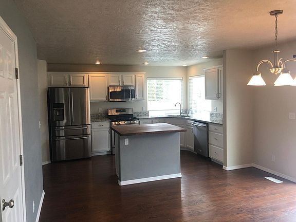 Nice open concept floor plan. Living room large windows for lots of natural light and a gas fireplace. Updates with new deck and stain and some new carpet. Kitchen has granite countertops and island with stainless appliances. Master bath has soaking tub and walk in shower. East facing back yard and 3 stall garage. Every person 18 yrs and over must fill out an application prior to viewing. Tenant responsible for all utilities and yard maintenance. No smoking in or on the property.