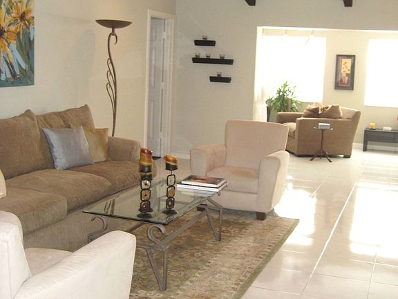 Fabulous location..Must See! Immaculate 3 Bedroom, 2 Bath split plan with Beautiful Vaulted Ceiling with exposed Beams, Eat-In Kitchen, Generous storage, Spacious Family Room, Ceramic tile in living areas and 3rd bedroom, Master Bedroom boasts beautiful wood floor. Newer A/C and W/D, Newly remodeled Pool Area, Centrally located to the Beach, Shopping, Dining.