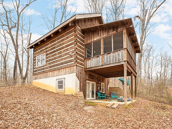 Looking for a secluded log cabin in the woods? Then come see 6675 Christiansburg Road. Nestled on just over 6 peaceful acres. This charming 2-bedroom, 2.5-bath cabin offers a perfect blend of rustic beauty and modern convenience, making it an ideal full-time residence or tranquil getaway. The main level features an open-concept design where the kitchen and dining area flow seamlessly into the living room, creating a welcoming space for gatherings or quiet evenings at home. Upstairs, the loft serves as the primary bedroom, complete with a full bath and a cozy sitting area. The basement offers a spacious second bedroom with its own full bath and washer/dryer hookups (a dryer vent will need to be added), and its walkout design leads directly to the covered patio, providing a sense of privacy and connection to the outdoors. The screened porch overlooking the wooded ravine (which would lend itself nicely to a potential lakesite) is a favorite spot for morning coffee or evening relaxation, while the front porch offers a charming welcome for guests. You'll enjoy the tranquility of the woods and the possibilities for outdoor activities, including evenings by the fire pit under the stars. Water for the home is provided by a cistern, a reliable and eco-friendly solution well-suited to this peaceful woodland setting. 6675 Christiansburg Road is a place where you can slow down and savor the beauty of nature, whether as your everyday escape or a cherished retreat. Schedule your private showing today to discover this enchanting log cabin in the woods!