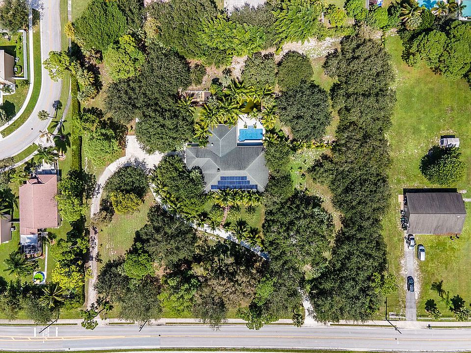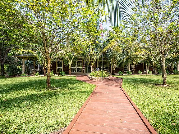 The perfext Florida home. You'll love this remodeled SOLAR Panel 3/2 home on 2.49 acre lot that is sub dividable. Newly remodeled kitchen with quartz countertops, soft close cabinets, stainless appliances, pantry and Indoor laundry. Family room makeover includes, crown molding, hardwood flooring and brick wood burning fireplace. Oversized master bedroom with on suite bathroom with walk in shower, comfort height commode and 36'' high double sinks. Updated hall bath leading to outdoor salt water pool area with walk-in shower, 36'' high countertops. Floor to ceiling new hurricane impact windows. Attached outback large party room with L shaped bar, TV, built-in BBQ, kegerator, ice maker, mini fridge and wet bar, and hot tub.