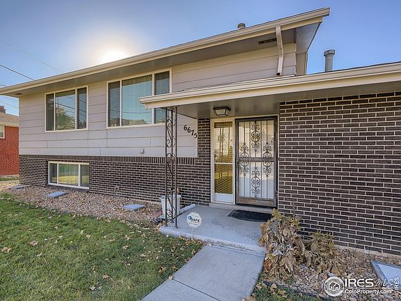 Wonderful loved home. Super location! Nine minute walk to Majestic View Park. 25 minute walk to the Arvada Center (1.2 miles). 1.75 miles to the downtown Arvada light rail station. Recessed lighting in living room, formal dining room and kitchen! Hardwood and tile floors on the lower level. Hardwood flooring on the stairs and upper hallways. Laminate flooring and carpet in bedrooms. Bathrooms have tile flooring. Family/Sun room with wood burning fireplace for those cozy winter evenings. Walk-out to your covered patio and backyard. Most windows around the home have been replaced with vinyl windows. Lower walk-out slider door is vinyl. Great view from the roof level balcony with built-in grill. Bedroom access from above or stairway from below. Full sprinkler system. New hot water heater. Attic fan and evaporative cooler for the warmer Summer months.