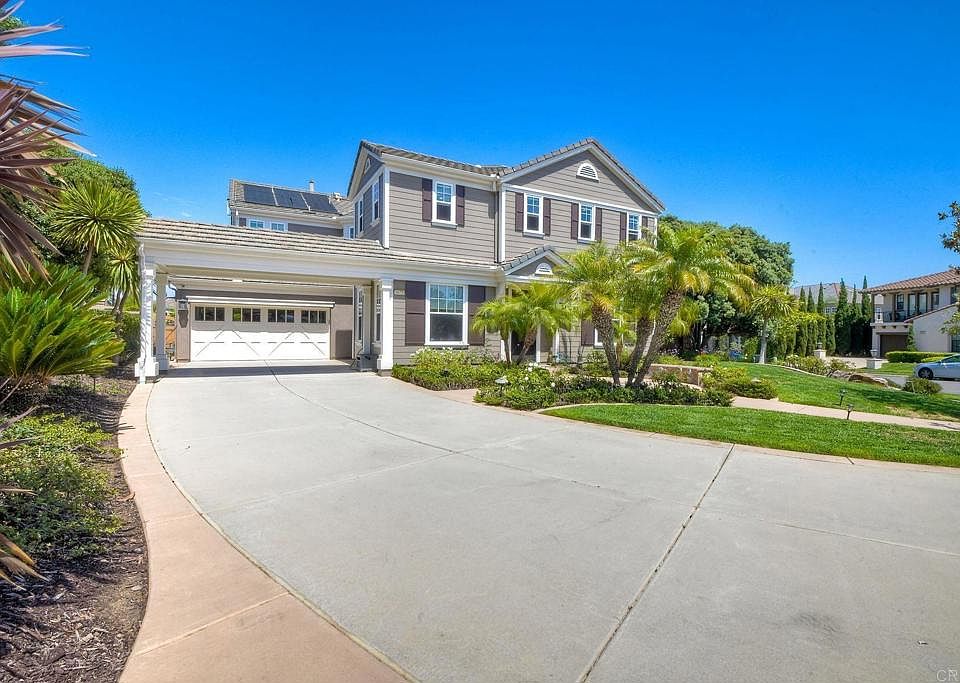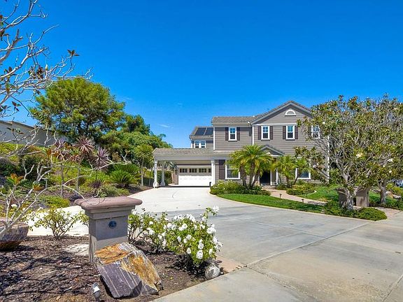 Nestled on a tranquil cul de sac with ocean views, this charming home offers an array of desirable features. You'll love the chef's kitchen, complete with a 48-inch range, Sub-Zero built-in refrigerator, and beautiful island, all ideal for culinary enthusiasts. Step outside to the beautifully landscaped backyard, boasting a solar-heated sparkling pool and inviting outdoor entertaining areas. Additional features include a downstairs ensuite, Jack-and-Jill bedrooms, an expanded upstairs den, a primary bedroom retreat that includes a bonus room, a downstairs office, and paid solar with two 220V EV chargers. Conveniently located near top-rated schools and amenities, this residence presents an exceptional opportunity for a serene coastal lifestyle. Upstairs den was expanded; recent appraisal shows square footage as 3,943. Listing agent is related to seller. Seller is willing to complete transaction with Bitcoin, if preferred.