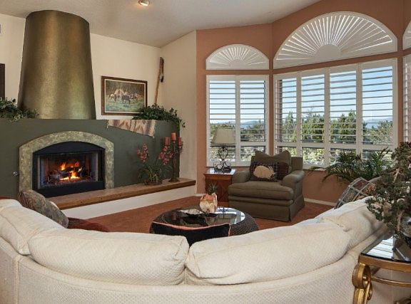 Enjoy peaceful, picture-perfect estate living near town in this enchanting 3 BR 3 bath home on an elevated 2.24-acre lot with 360-degree views of soothing mountains and national forest! Set on the highest point in Phase I of Thunder Ridge, on stunning private grounds intertwined with lovely walkways, green grass, natural desert landscaping and a fenced area for a garden or pets. This architecturally-distinctive home offers 3,080 SF of elegant living space with an open floor plan and great flow for entertaining. Extend gatherings outdoors on the adjoining covered and uncovered patio that totals 616 SF. Commune with nature by the large fountain with seating area, or in the rear hot tub for ultimate relaxation. Cozy up by the fireplaces in the living room and master suite on chilly nights. You'll love spending time at home in this warm, welcoming and luxurious home, centered by a cathedral-ceilinged living room with a beautiful fireplace. The chef's kitchen with generous cabinetry opens to the dining area and breakfast nook for seamless serving. Generously-sized bedrooms and an appealing split-bedroom floorplan optimize comfort and privacy. A 640 square-foot bedroom suite added in 2005 is perfect for in-laws, the caretaker or guests. This is a quality-built and impeccably-maintained home with 2x6 construction ensuring a quiet interior ambiance. Other highlights include central air, an extended circular driveway for ample parking, a 1206-SF garage with an insulated bay/workshop complete with 220 electric, and a drip irrigation system plus sprinklers. Thunder Ridge is a desirable master-planned community designed for view corridors, low density with a 2-acre minimum lot size, a community clubhouse and pool, and low HOA fees of only $95/quarter. The location is within a quarter mile of a U.S. forest, laden with wildlife, and convenient to local attractions and amenities. To SCHEDULE A PRIVATE VIEWING, contact Lynne Easterday, 928-301-3180, Locally Awarded 2015 and 2016 "Best Real Estate Agent"