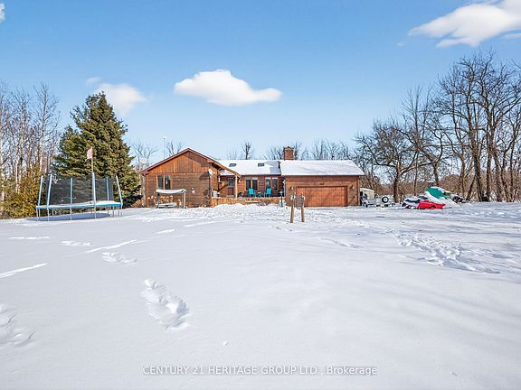 Escape to your own private retreat on picturesque Scotch Line, where peace, space, and natural beauty come together on just under 2 acres of country paradise. From the moment you arrive, the long driveway with ample parking sets the tone for the privacy and serenity this property offers, leading you to a beautifully positioned 3+1 bedroom, 2 bathroom bungalow with an attached 2-car garage tucked perfectly toward the back of the lot. Imagine unwinding each evening on the charming front patio, watching breathtaking sunsets over your blooming perennial gardens. Step inside to a bright, welcoming interior featuring rich hardwood floors throughout, a skylight entry, & fresh, modern paint that makes the home feel move-in ready. The living room is warm and inviting, complete with a wood-burning fireplace, wood accent walls, and natural light from the skylight, the perfect space to relax on cozy winter nights. The modern white kitchen offers granite countertops, backsplash, skylight, stainless steel appliances, & a sleek induction stove that will impress any home chef. The dining room seamlessly connects indoor &outdoor living with a walkout to the spacious two-tier back deck ideal for entertaining, summer BBQs, or morning coffee surrounded by nature. The primary bedroom offers a peaceful retreat with a generous layout & private 3-piece ensuite. Two additional main floor bedrooms & a 4-piece bathroom provide comfortable space for family or home office needs. Downstairs, the bright & open basement expands your living space with a large recreation room featuring a woodstove for added warmth & ambiance. A fourth bedroom is perfect for guests or family, & a spacious storage room to keep everything organized. Outside, the expansive yard offers endless opportunities for entertaining, playing, or simply enjoying the quiet beauty of mature trees and near complete privacy from neighbours. If you've been dreaming of space, privacy, & style, this property is a must-see.