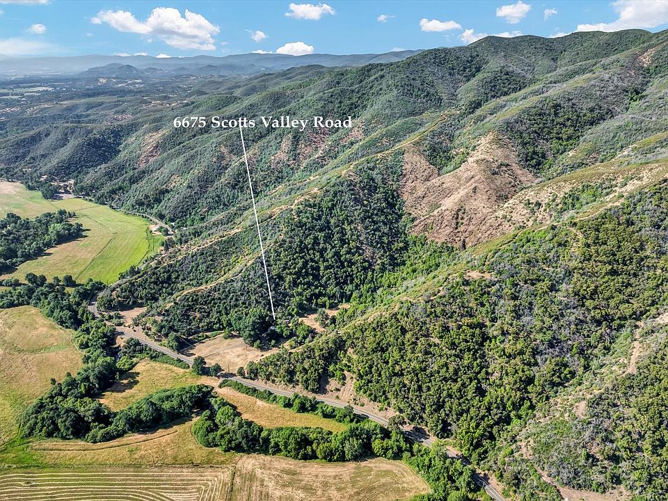 Retreat to Country living on a stunning 84+ acre sanctuary in Scotts Valley. Nestled amidst nature's beauty, the property features a vintage 1900s fixer-home settled at the heart of a water canyon with a seasonal waterfall backdrop. Surrounded by a diverse and abundant wildlife population including deer, turkey, pigs & quail, this property is a Hunter's Paradise offering the best hunting spots in Scotts Valley. The entire property is accessible providing easy navigability for any outdoor activity. To the West & South the property adjoins BLM Forest where you can connect with the landscape hiking along the ridge trails or enjoy a long horseback ride over Cow Mountain to Mendocino County. The 2bed/2bath home had a foundation and new roof added circa 2007 and features original hardwood floors in the living/dining rooms and bedrooms. The kitchen was remodeled with new cabinetry, countertops, flooring, light fixtures and appliances. Beautiful views from every window, the backyard is fully fenced for dogs/livestock and covered stables for horses with 2 stainless steel silos that go with the property. The well is +/- 29ft deep and has never ran dry in 20+ years. Located within 15 min to Safeway and other shopping and only 6 min to Hwy 20 for easy commuting.