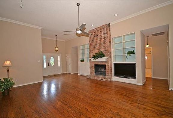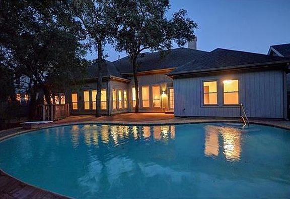 This Lost Creek one-story with 4 bedrooms/2 1/2 baths has two large dining areas,updated kitchen, baths, wood-burning fireplace, pool w/diving board, water feature in very private backyard. Master suite with enormous closet. Lots of windows, plantation shutters, tankless water heater in floored attic. Kitchen has 2-drawer dishwasher, 2 ovens, warming drawer, 5 burner gas cooktop, bread drawer, microwave, pullout drawers, tray dividers, pantry in utility room w/drop down ironing board. Leaving 50" TV.W/D