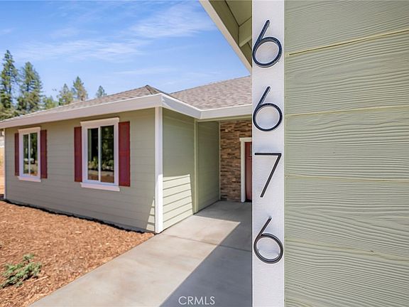 Fantastic Paradise Location for this New 2022 Custom built home by Frost Construction. Seller Financing Available. The builder is a long time Paradise builder who also lives in Paradise! This neighborhood has a lot of houses/neighbors and tall evergreen trees that are still standing. This new home rests on a .31 acre lot. This 9ft. wide concrete walkway to the covered front porch and cultured stone around the front door welcomes you into the home. The custom home offers 9ft. ceilings, imperfect smooth coat drywall finish, formal entry with coat closet which opens to the living room, kitchen and dining area with the open floor concept. The living room offers a custom 10ft. tray ceiling with crown molding and up lighting hidden behind the crown molding and a slider to the concrete patio. The spacious kitchen offers upgraded solid wood shaker style cabinets with soft close cabinets and dove tailed drawers, walk in pantry, granite slab counter tops, tiled back splash, pull-out spice rack cabinet, recessed LED lighting, natural gas oven/range, built in microwave, dishwasher and oversized under mount farm sink. The dining area has a slider to side yard. Upgraded vinyl plank flooring through out the home! The 103 square ft. individual laundry room offers granite slab counter with cabinets below, natural gas hook up for a dryer and more cabinets above washer and dryer area. Down the wide hallway is the two guest bedrooms and guest bath offering Bianco Antico Classic granite counter top vanity, nickel fixtures and a tub/shower combination. The large master bedroom offers the 10ft. tray ceiling with crown molding, up lighting hidden behind & a second crown molding at the 9ft. portion of the ceiling, slider to back patio & a spacious 60 sq ft. walk in closet with built in shelves. The master bath offers a large soaking tub wrapped in tile, Bianco Antico Classic granite slab dual sink vanity & easy step in shower w/ Quartz slab walls & glass doors. Wonderful added 10ft. X 50ft. concrete patio w/ BBQ gas stub and a 57' walkway from the front of the house to the backyard. This home also offers RV, boat or trailer parking with 50 amp RV plug and water. The extra parking measures 15ft width by over 60ft. length. A fully finished oversized two car garage with utility sink. The property is also 3/4 fenced. The builder also added some front yard landscape. RV Parking accommodating 15x50 feet of space. Great central Paradise location with a lot of homes in the neighborhood.