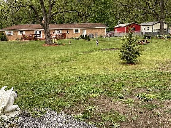 4 bedrooms 2 full baths 2 acres with 5 garages. Fenced in yard. Tiny house on the trout stream in back yard. Home need all new carpet. Very large home. Electric heat no central AC. About6 miles from town. In a country setting. Beautiful area nice small home town feel.