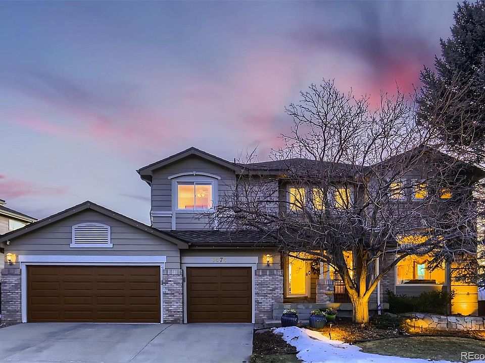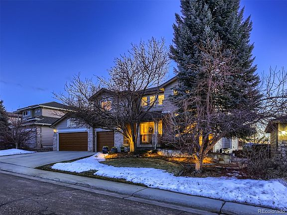 Welcome to your own sanctuary overlooking Colorado’s glorious mountains! Poised high atop the community, this rare beauty boasts show stopping mountain views and designer upgrades! MOUNTAINS & vibrant orange/pink sunsets! Elegance, refinement and charm are captured in this stylish remodeled home. The beautiful sprawling floorplan has cathedral 2story vaulted ceilings & dual wrought iron staircase. Well loved, this home is in pristine condition w/attention to detail. Decorator touches & amazing features include: Vaulted unique & stylish architecture *Airy cathedral ceilings in entry/family room *Bridge concept looking down on lower level *Cheerful bay & large windows *Gleaming extensive wood flooring *Custom paint *Upgraded window treatments & upscale lighting *Newer AC *Newer furnace *Newer carpet *Newer upscale windows & Newer class 4 roof. The kitchen is perfect for entertaining w/open concept to the gracious family room. The Chef’s gourmet kitchen boasts handsome cabinetry, sleek quartz/huge island, stainless high-end appliances, 5 burner gas cooktop & cheerful eating space. Step outside & sit on your private deck while you take in nature, serenity and amazing scenery. Sip morning coffee with the birds and butterflies. The beautiful deck overlooks a pristine well landscaped yard with lovely water feature. Perfect for entertaining as you spend summer evenings barbecuing under the stars. The large primary has ensuite 5piece remodeled beautiful bath w/ HEATED marble floors, soaking tub, glass shower & dual sinks. The large walk-in closet has built-in shelving. The walkout basement has a big Rec room & gym/office. The OVERSIZED 3car Garage has epoxy floors & custom shelving. SENSATIONAL location-near parks, trails, HighlandsRanch Rec centers/pools/fitness/tennis/activities & award winning schools. Minutes to shopping, Whole Foods, Park Meadows Mall, restaurants. *Easy access to the highways, I 25, Tech Center, Light Rail, Downtown Denver, Reservoirs & Mountains