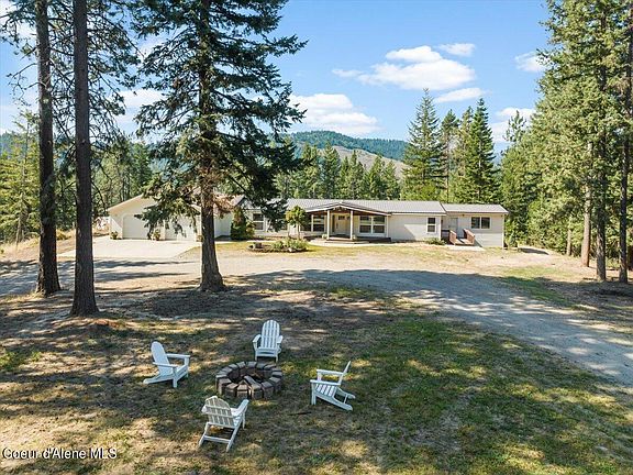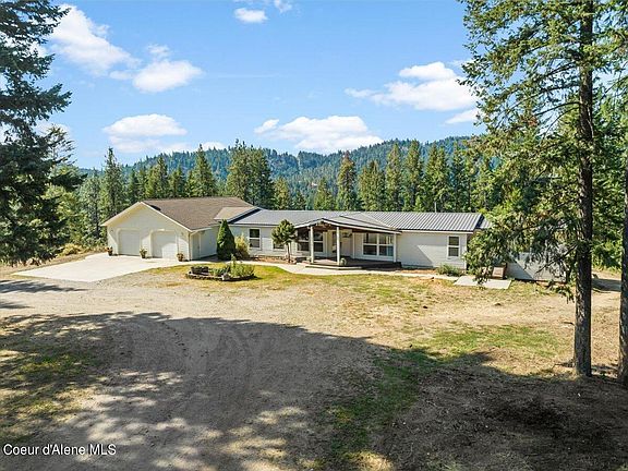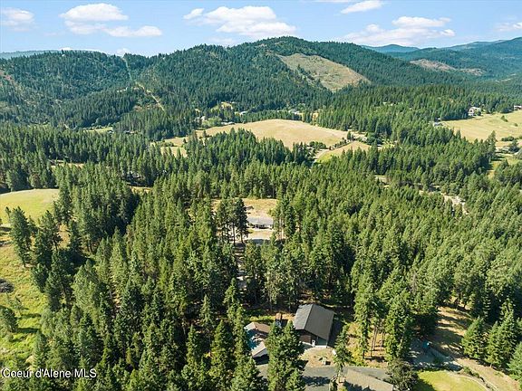 Beautiful Setting in Cougar Gulch with Heated 24x36 Shop w 220, RV hook ups, Open 5 Bay Storage Building, PLUS a heated 4+ car garage and end of the road privacy! Fully Fenced 10+ acres only 6 minutes to Lake Coeur d'Alene, Restaurants, and downtown CDA. This turn key Rancher has 5 Bedroom, 2 Bathrooms, split bedroom plan, Master Suite with Sauna, his and her closets, and an entrance to your beautiful covered back deck for morning coffee with views and wildlife galore. Plenty of mature trees and wildlife with a seasonal pond, beautiful creek and you will be impressed with the sprawling back deck and covered porch which will encourage you to enjoy the peace and serenity of the land and take in the mountain views.