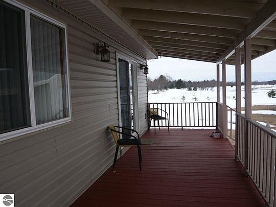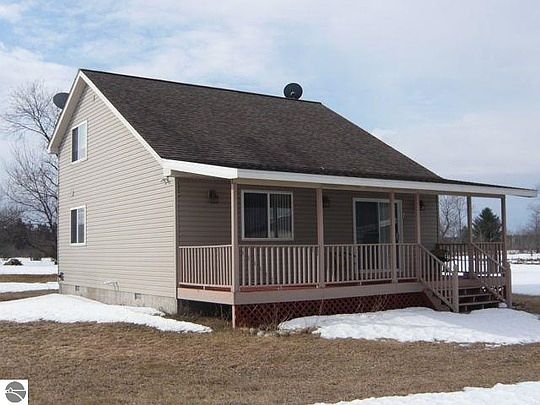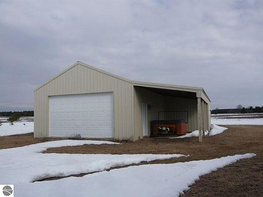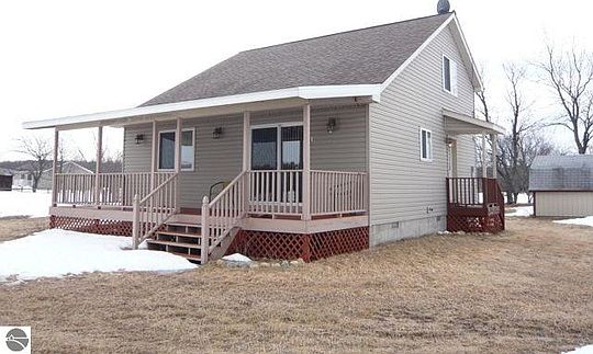 Drive, fly or snowmobile to this charming 3 bedroom, 2 bath home on 5+ acres near the trails. The home offers an open floor plan with laminate flooring and countryside views in the great room. You will love the wood ceilings in the living room that offer just the right touch of Up North. There are two bedrooms up that share a bath, and a main floor master with an adjacent bath and laundry. A full-length porch faces the air strip, a distant view over the meadow of your back yard. Air conditioning will keep you comfortable on the hottest of summer days. For all the toys, there is a large pole building, complete with an attached shop and paint room. Under the overhang, there is a hot tub as well. The buyer of this property will share a 1/48 interest in the private grass air strip. Make this yours and start enjoying all northern Michigan has to offer.