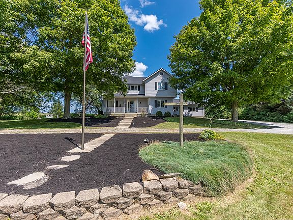 This coveted property is the one you have been waiting for! This private 5-acre, 5-bedroom 2 bathroom 3,288 sq ft property has it all! Home is listed as built in 1920 BUT was mostly rebuilt/added onto in 2002. Featuring a beautiful grand kitchen with 42 cabinets and a vaulted breakfast area. A living room that features a bay window, pellet stove fireplace and glass doors that open to the back deck. Formal dining area and a 1st floor 5th bedroom/office space. Anderson windows, an upstairs loft with built-in shelving. A 26'x22' vaulted ceiling master bedroom with a stunning view that overlooks the field and perfect for watching the sunrise. Basement workshop space-accessed from inside or outside. 2 car attached garage. 2.9 acres is tillable/potential pasture.(currently farmed by local farmer with crop rights for this season.) The 50'x40' and 31'x'24 outbuildings offer 2 horse stalls w/ loft storage. Updates include: new roof with complete tear off 2023, All new paint throughout, all new carpet and flooring throughout, new lighting, Updated kitchen with quartz countertops, new backsplash, and brand new flooring and fixtures, added wainscotting in dining room, added deck gazebo which conveys (deck furniture does not convey), added chicken coop, '15 garage door, radon mitigation system. '16 water heater and septic line repair. '17 well pump '18 opener/electric panel/concrete/aluminum siding in barns '21 Front screen door/82 tons of gravel added to the driveway