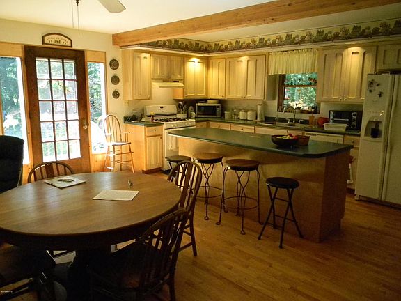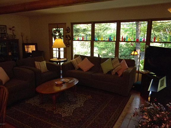 One of the most unique properties in Southwest Michigan. Located in the Sherman Hills area of St. Joseph County is this charming 24 year old home overlooking the old Mill Creek and dam. Listen to the water rushing into the trout creek from inside the home, while enjoying the view of it from the den or living room. Take the path extending beyond the home to a nice opening and pole barn currently being used for horse pasture. Continue further up the trail to the final campsite opening, and the shoreline of Thompson Lake. Thompson Lake is a highly desirable, all sports lake with an up north charm. Much of the lake is undeveloped, and wooded around it. Thompson Lake offers some of the best fishing in the area, and this property also has some of the best deer hunting available.