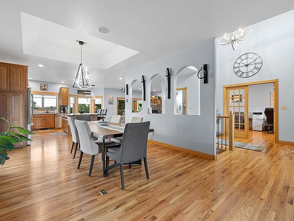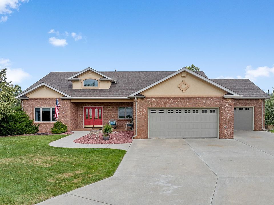 Listed by Shauna Sheets, KWBH, 605-545-5430. Nestled in the foothills of the beautiful Black Hills, the Estates at Red Rock is home to an award winning golf course and a much desired housing community. *The striking brick exterior sets the tone for this ZERO ENTRY luxury home offering 5 bedrooms, 2.5 bathrooms and 3,752sqft *Fresh interior paint, new modern light fixtures, 9' ceilings, beautiful wood floors throughout the main level, whole house surround sound and more make this home a must see *The 2-story entryway gives access to the open concept main level, with the living room and kitchen serving as the heart of this home *Picture family and friends around the large island, enjoying meals made in the chef's kitchen with top of the line, professional grade stainless steel appliances, high-end finishes, custom cabinetry with crown molding, and granite throughout *The nearby living room gives added space to entertain and has great views and slider door access to the covered patio *Formal dining area plus breakfast nook for meals *Cozy den in the front of the home, with a 2nd fireplace for style and warmth *Unwind in the main level primary suite, with a spacious bedroom with beautiful views and private patio access, an ensuite bathroom with walk in shower, Safe Step walk-in tub, 2 sinks and a private walk in closet *A second bedroom option (currently used as an office, ntc for closet), main floor laundry room with sink and great storage space complete this level