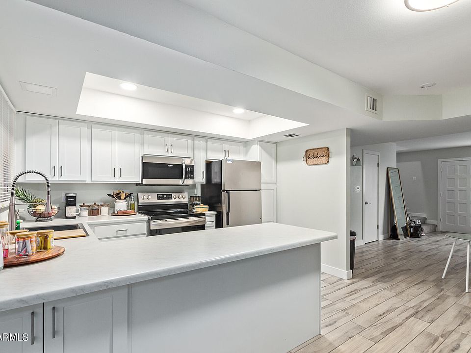 Ceiling fanUpdated vanityUpdated counter topsWhite cabinetsCovered patioUpgraded hardwareStainless steel hardware