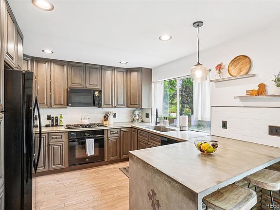 Welcome to this beautifully updated and lovingly maintained 4-bedroom, 2-bathroom home. Ideally situated on a quiet, tree-lined street & nestled on an oversized corner lot, this home offers both space and style with thoughtful upgrades throughout. Step inside to find warm oak flooring on the main level, a bright and open floor plan, and custom touches like poured concrete kitchen & bathroom countertops. The kitchen is functional and stylish, perfect for everyday living and entertaining alike. Enjoy the spacious primary bedroom retreat featuring an en-suite bathroom and a fantastic walk-in closet. The cozy lower-level family room provides the perfect spot for movie nights, game days, or simply relaxing at home. Step outside to your gigantic composite deck, ideal for hosting gatherings, enjoying morning coffee, or soaking in the Colorado sunshine. The expansive corner lot offers endless potential for gardening, play, or future outdoor enhancements. Located close to parks, schools, shopping, and dining, this move-in ready home combines charm, comfort, and convenience in one exceptional package. You don't want to miss this one!