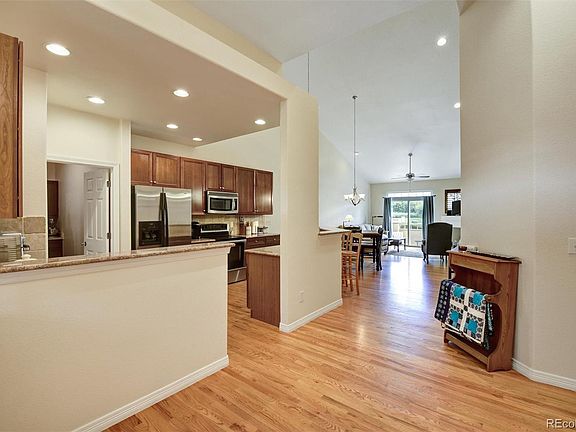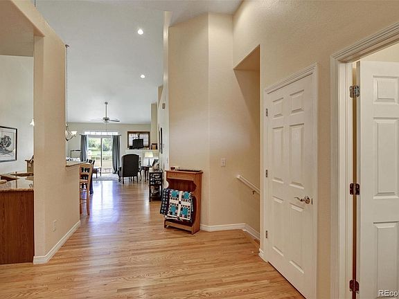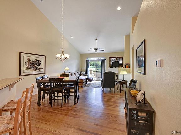 You will not be disappointed with this impeccably maintained townhome in the sought-after community of Saddle Rock Golf Club. Thís light and bright home sparkles with oak hardwood floors and custom wood blinds throughout. The open floorplan features vaulted ceilings towering above the spacious dining and living room with cozy fireplace and convenient access to your private wrap around patio. Kitchen features tasteful granite counters, stainless steel appliances, high quality cabinets and convenient access to the main floor laundry with washer and dryer included. Main floor master bedroom with ceiling fan includes an en-suite 5-piece bathroom with walk-in closet and soaking tub. Conveniently located main floor second bedroom would be ideal for a main floor study adjacent to the main floor full bath with tasteful ceramic tile floors and tub area. Stepping onto the hardwood floor stairs and into the partially finished basement, your buyer will be pleased with low maintenance hardwood oak floors, custom solid wood blinds, another full bath, a spacious bedroom and a large open family room. Newer furnace and 50-gallon hot water heater. Enjoy the amenities that Saddle Rock Golf Club including access to the Saddle Rock Clubhouse, Pool and Tennis Courts. Compare the upgrades in this gorgeous home to others currently on the market in the area!