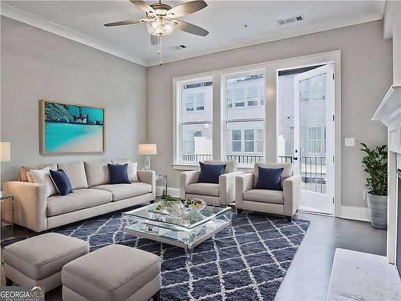 Experience the upscale, urban ARIA lifestyle! Enjoy work-life-play in vibrant Sandy Springs! Beautiful and modern 4-level townhouse, walkable to shopping and dining at Aria Village! Conveniently located next door to Mercedes-Benz headquarters, across the street from UPS headquarters, just minutes to Cox Communications, State Farm headquarters, and many more companies. Close to downtown Sandy Springs, GA400 & I-285. Easy drive north to Roswell and Alpharetta, downtown Atlanta, airport. BEAUTIFULLY APPOINTED and UPGRADED townhome! Sleek and stylish, just refreshed with all new paint. NO CARPET! Beautiful hardwood floors, gorgeous open concept kitchen, dining area, fireside living room opens to deck. Sophisticated primary suite with luxurious spa-like bath is located on the top floor along with a loft, laundry room, and access to the sky deck. Excellent storage! Finished terrace level features a huge flex room, full bathroom and 3 closets. Steps away from the resort-style pool. Requirements to rent: 700+ credit score, clean credit required, no prior evictions, non-smokers/vapers, monthly income 3X monthly rent. No cats. $6000 damage/security deposit required at lease signing. The home is tenant-occupied and will require an appointment to tour the day before. Copyright Georgia MLS. All rights reserved. Information is deemed reliable but not guaranteed.