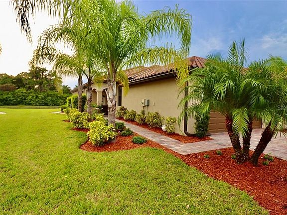 Welcome to River Strand Golf & Country Club! Conveniently located just off of exit 220 from Interstate 75 w/ easy access to Sarasota, gorgeous world renowned beaches, Tampa & Naples. This gorgeous WATERFRONT maintenance free Orchid model located in The Sanctuary w/ social membership awaits. Behind the 24-hour security guard gate, is this immaculately maintained villa w/ updates galore. The entire home includes all white ceilings & crown molding throughout. Immediately upon entering there is an oversized framed custom mirror in the entry way. The guest quarters upgrades include a palm ceiling fan & custom bead board paneled bathroom wall. In the laundry room, there are high energy efficiency GE washer & dryer topped off w/ custom upgraded white soft close cabinets. The den is currently used as a tandem in-home office complete w/ custom cabinets & gorgeous granite top together w/ upgraded tile. Just beyond the office, the kitchen includes upgraded lights & decorative wood wall paneling beneath the breakfast bar. The living room features a custom built-in frame w/ a 72" TV (not included) which is a showpiece including a dimmable light kit&5 panel Levolor gliding shade. The Master suite includes both his & hers custom closets, upgraded wall mounted sconces & nightstand switches, expansive bathroom mirror, showerhead & a remote controlled ceiling fan. Heading out to the extended lanai, there is a newly added custom refrigerator bar area complete w/ 2 large cabinets & beautiful quartz top.