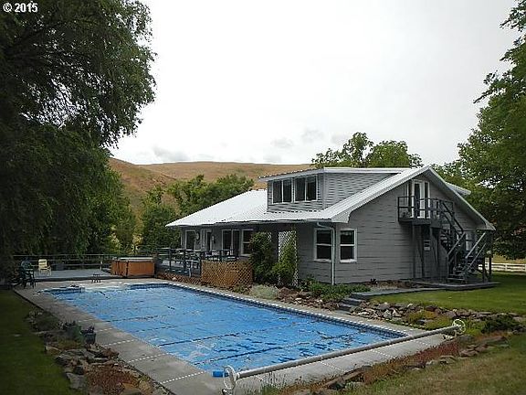 Beautiful Pleasure Ranch includes 162 acres with well cared for 5 bedroom 3.5 bath, 3 story farmhouse. Guest house or care taker''s cottage. 22.17 acres irrigated hay ground, machine shed, shop, potting shed, 3 older barns, fenced,4 hay fields. Full sized 50x20 in ground pool.#1 water rights. Creek lasts year round many years. Horse property, easy drive to trails. 16.7 miles from Umatilla Nat. Forest. Ideal retreat location!162.63 acres