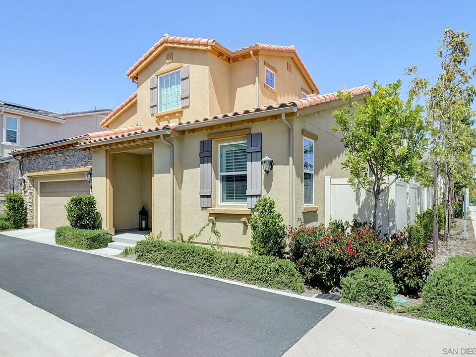 Turnkey Carlsbad home located in the highly sought after community of Treviso! Situated on a corner this 3 BD 3 BA home lives like a single-story with the primary suite and additional guest bedroom and full bathroom located on the main-level. The open-concept layout seamlessly connects the kitchen and living areas where the modern chef's kitchen is the heart of the home, equipped with espresso Shaker-style cabinetry, quartz counters, SS appliances, island with breakfast bar and walk-in pantry. Open to the kitchen, the spacious great room offer indoor/outdoor living at its finest with an oversized sliding glass door leading to the backyard. The backyard oasis features a designer water feature, custom concrete, fully automated pergola designed to keep you dry from rain or to leave open on a sunny day with the touch of a button and weather sensing abilities. The backyard brings the comforts of the interior to more alfresco settings with room to entertain or simply unwind and enjoy San Diego’s idyllic weather year-round! Additional drainage was added throughout the entire yard. Main-level primary suite features sliding glass doors, dual walk-in closets & spa-quality bath with dual vanities and walk-in shower.The upper level comes complete with additional guest bedroom, 3rd full bathroom and versatile loft/family room or possible 4th bedroom. Smart Home features Schlage keypad entry, Ring doorbell, Honeywell thermostat & myQ garage opener.Owned Solar keeps your electric bills low!Treviso offers a resort-style community pool & spa, BBQs, firepit, 2 playgrounds & RV parking.