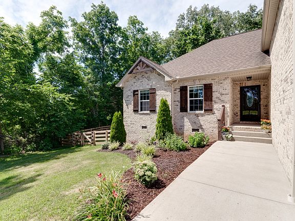 This stunning home in Cross Plains sits on over an acre and is zoned for White House Heritage schools! Open floor plan with granite, stainless appliances, and staggered upper cabinets in the kitchen. The primary suite with double tray ceilings and double vanities overlooks the beautiful backyard. Upstairs the spacious bonus room has a full bath and can be used as a 4th bedroom. Walk out back to your private oasis that includes a covered deck which boasts an amazing porch swing, watering system for plants, tv, and outdoor speaker hookups. The patio has a gorgeous stacked stone fireplace to enjoy the cool nights. Brand new pine farm style 4 rail fence with black pvc coated welded wire and three 10' gates. New 10x12 storage shed at the back of the property with a separate concrete pad, ring doorbell, and outside security cameras. Close to I-65 and only 30 minutes from the airport!