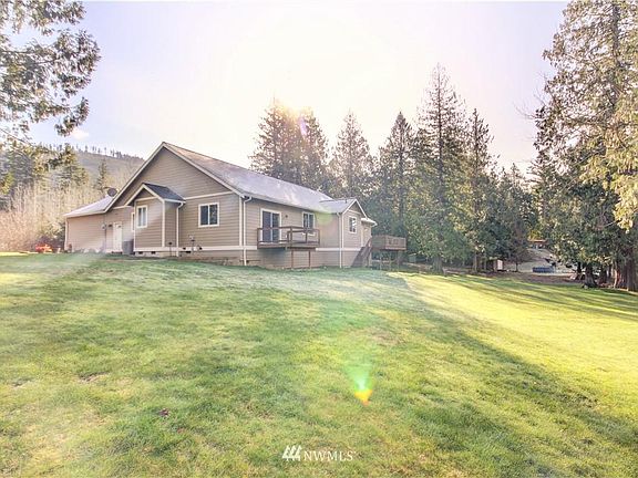 Beautiful 2015-built home on a park-like 1.25 acre lot. Relax on the large covered front porch while enjoying the views of the neighboring hills. Slate entry leads to a spacious living rm w/gas fireplace, vaulted ceilings & beautiful floors. The very generous kitchen has a long eating bar, walk-in pantry & granite countertops. French doors lead to a large deck w/lush territorial views. Each bedrm has a walk-in closet & shimmering crystal light fixtures. The spacious owners suite includes a private deck & en suite bath w/tiled shower & soaking tub. In addition to the 2 car garage, there's also a 3 bay detached shop, plus ample paved off-street parking. Extensive yard space includes a raised garden bed & private patio with a fire pit.