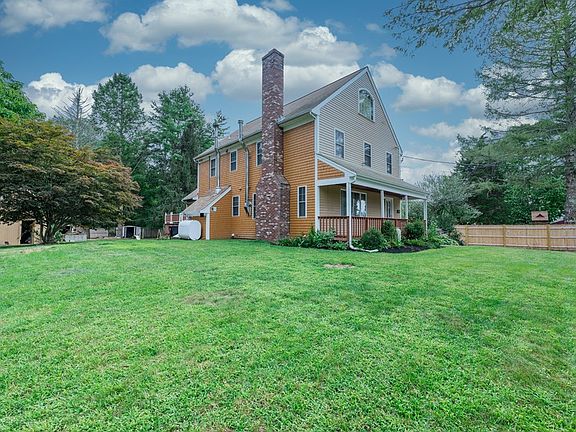 Lake Views! This gorgeous Colonial is very spacious with a huge family room off the large eat-in kitchen. Off the family room are sliders leading to the beautiful deck with above ground pool, overlooking the lovely back yard. The 1st floor offers a full bath, laundry room and lovely living room with fireplace. The beautiful stairway leading to a large master suite with lots of built in cabinets and a spacious full bath. There is another full bath with two more nice size bedrooms. Home is set back from the road for quiet and privacy. Home has gorgeous hardwood floors throughout and tile in kitchens, baths and laundry room. The oil heat boiler is 6 years old.