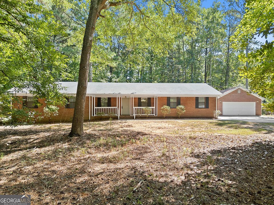 Honey Stop the Car! You will want to see this 4/2 Full Brick Ranch style home on almost 2 acres. Freshly Painted Interior & Exterior, NO HOA with Oversized Detached garage with Roll-up door on 2 sides , & 672 sq.ft. with LVP, Laminate flooring throughout and 4th Bed/Flex room with NEW mini split. Sought after OLA school district. Fenced Backyard Private setting sitting back in the trees for your enjoyment! Schedule your appt today to view this one in showing time or Call Wayne @ 770-294-5951
