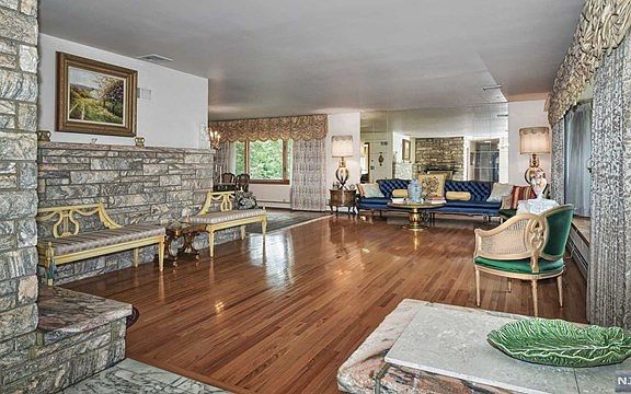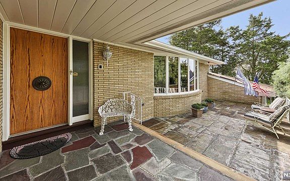 Sprawling Custom Solid Brick Ranch nestled on over an acre of park-like property w/a lush surround. Meticulous home offers 3 Bedrooms, 2.1 baths & a huge finished basement that walks-out from garage. Large sun-filled Living Rm w/hearthstone wood-burning fireplace transitions to a banquet sized Dining Rm for gatherings. Beautiful Kitchen enhanced w/granite and SS appliances opening to Breakfast Rm w/sliders to patio. An expansive Great Room provides vistas of the gardens & a natural backdrop. The front slate open porch has commanding views of Northwestern, NJ. A separate wing offers a MBS w/newer en-suite bath w/over-sized shower, 2 add l Bedrooms & main bath. Enormous basement w/endless potential; bath, office, storage, rec room,laundry and more! NYC transit at corner. Easy access to schools and highways.