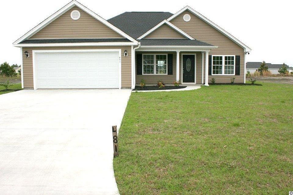 The Maplewood is a spacious 3 bedroom open floor plan with split bedrooms. This home has a 16 foot long front porch. Great room has a cathedral ceiling and ceiling fan. Hardwood floors in great room, dining room, all bedrooms, and halls. Large Dining area open to the Kitchen and Great Room, with glass doors leading to the 8' x 21' screened porch. The Kitchen has lots of cabinet space with stainless steel appliances and a breakfast bar. There is a laundry room. The Master bedroom suite has a tray ceiling with fan, large walk in closet; the master bath has a private walk in shower with seats and a vanity with lots of counter space. The two car garage has an automatic garage door opener and attic access. This home has 30 year shingles on the roof. Porters Bay is an established neighborhood with the enjoyment of country living while only 30 minutes to the beach. Porters Bay is located 3 miles from downtown Loris, 15 minutes to Conway with its many fabulous restaurants and theater. Established neighborhood. Photos are for illustrative purposes only and may be of similar home built elsewhere. Square footage is approximate and not guaranteed. Buyer is responsible for verification.