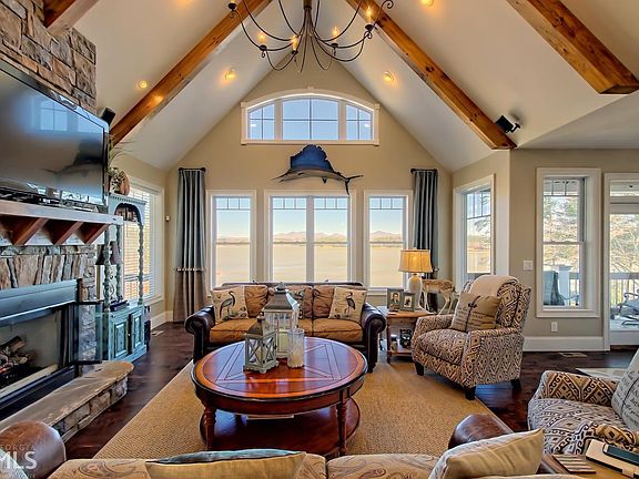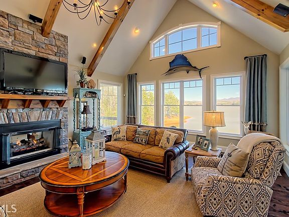 Incredibly stunning, furnished Lake Nottely home with absolutely AHHHHHMAZING LAKE & MTN VIEWS, including views of Brasstown Bald. Awesome two story, double slip boat dock (permitted by TVA) AND the boat is included too! Spacious, open floor plan that is oh so beautiful! Main floor master bedroom overlooking the views with its own private porch. Large windows accentuate the beauty of the outdoors. Tastefully decorated and most things stay with the home. Everything about this place is top notch! Also has a RV shed and an outdoor storage building. 22 K whole house generator too.