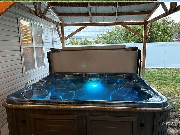 Attention to detail New Flooring, Fixtures, Stainless LG appliances. Upgraded carpet and pad additional insulation and home is very clean. Property is fenced with sprinkler system 2 blocks from park and pool. Trex decking, new Artic Spa Hot tub, covered, storage shed 12 x 8 and wired finished additional larger shed 16x10 which could be office, craft room etc that is also wired. Attention to detail in ad out. Finished 2 car attached garage with additional storage area. This home is turn key! All Electric Home! Vinyl Siding and more. You will be amazed when you enter this home! Prequalified buyers please and 24 hour notice to show if possible. Call for details!