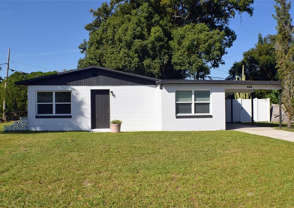 Welcome to this fully remodeled home that has been completely updated from top to bottom. The kitchen features brand new cabinets, countertops, appliances, and even a built-in spice rack. The flooring and baseboards throughout the home are also new. The roof was replaced in July 2024, and the A/C unit was replaced in 2023, ensuring that the home is energy-efficient and comfortable year-round. The bathroom has been completely remodeled in 2024, and the windows were also replaced that same year. Additionally, the entire house has been rewired, new switches and outlets were installed and the fusebox was replaced in 2024, providing peace of mind and safety for the new homeowners. This home also boasts an inside utility room and an open patio in the backyard, perfect for enjoying the Florida sunshine. Don't miss out on this turnkey property that is ready for you to move in and start enjoying all the modern updates it has to offer.