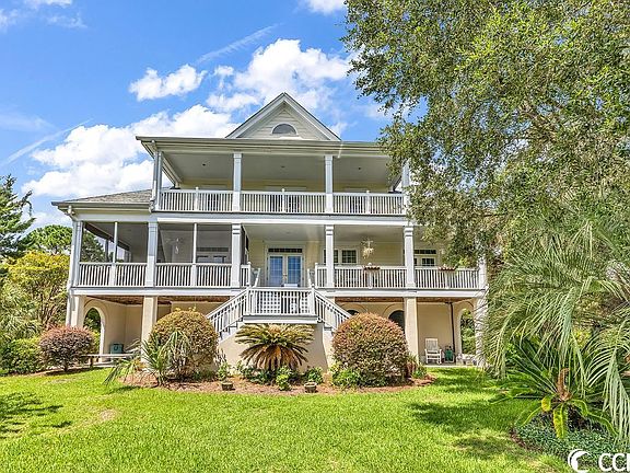DeBordieu Colony Golf Course Home. Raised home with Outstanding views of the lake and the 11th fairway of Pete Dye's championship layout. Large homesite, live oaks and golf course views highlight this centrally located property. Spacious 2000+ sq. ft. 6+ car garage with plenty of room for boats, cars, golf carts, bikes and more. Over 2,600 square feet of covered porches to sit and enjoy the morning sunrise or the evening sunset! From the breakfast nook, the large screened porch provides space for dining and relaxing while looking over the gorgeous live oaks and lake views. The master bedroom and bath are located in the left rear of the home with separate sinks/vanities, garden tub and walk in shower. The main level is completed with the formal dining room perfectly situated with easy access from the kitchen, two separate islands in the kitchen, breakfast nook, great room and laundry room. The second floor has 4 guest bedrooms, 2 full baths and a large bonus/media room. The walk up attic area has flooring for Loads of storage! DeBordieu Colony offers miles of private beach, a boat ramp that provides access to North Inlet and the Atlantic Ocean, an onsite nature preserve with hiking, biking and golf cart trails, all within a 24 hour manned security gate. The private DeBordieu Club offers golf, tennis, pools and a fitness center. The club also has multiple dining options to include oceanfront dining for members and guests. Founders Club Membership may be available. Wednesday September 6th is the deadline for Highest/Best offer.