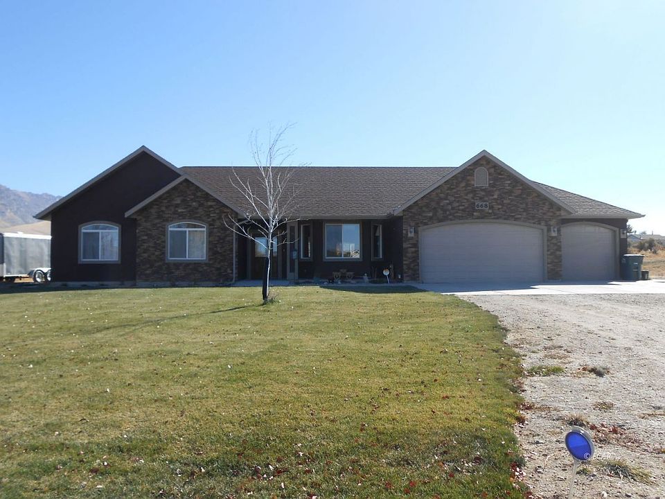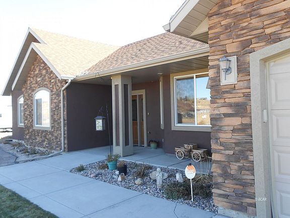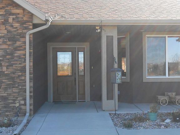 If you are looking for a home in a quiet location and views to gaze at the beautiful mountains, then look no further!!! This 4 bedroom 2 bath home has all the extras. The circular drive way leads to a 3 car insulated garage at 728 sq feet. the exterior has stacked stone on the garage front and the center of the home. The covered porch allows relaxing time in the morning for coffee . The entry is spacious with room to remove shoes and coats. The dining room has vaulted ceilings and the living room is across the back of the house. There is a hearth placed in the corner for a future pellet or wood stove. The kitchen has a large island and custom wood cabinets. The pantry and built in desk are a must. The master suite is at the opposite end of the home with a over sized curbless shower for easy access. Double sinks and a walk in closet finish off this custom space. The hall is a width and a half for easy access and move in. The fourth bedroom is off of the kitchen for privacy for guests or an office. And the yard!! Lush grass and perennials.! The cement patio is 14x28. For snow issues, the gutters have heaters for snow melt. This home is well cared for, take your time!
