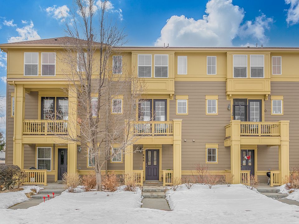 Beautiful townhome in Coal Creek Village! Open-floor plan flooded with natural light. Enjoy the large kitchen with abundant counter space, the spacious living area, and balcony overlooking green space and a park. New laminate wood floors, carpet, and paint. Oversized 2 car garage and a tankless hot water heater. In a great location, close to Old Town Lafayette, Coal Creek Trail for hiking and biking, public transportation, Lafayette Great Outdoors Water Park, restaurants, and shopping. Close to Hwy 287, and an easy commute to DIA, Denver and Boulder. Move-in ready. Showings start Thursday 2/17. Easy to show.