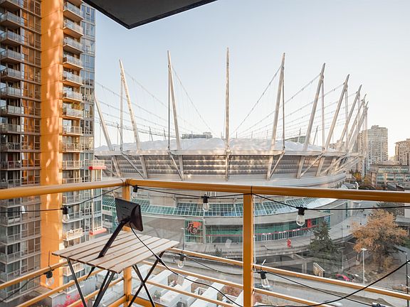 Great investment! This cozy 1 bed/1 bath + solarium & den condo with views of the City & BC PLACE is expertly laid out with open concept living and dining rooms, glossy white counters & appliances, laminate flooring and granite countertops. The Spectrum II has spa-like amenities in Club Ozone including indoor lap pool, sauna, steam room, fitness centre, party room and more. Boasting vast city views with a Costco below the building, the Skytrain station just across the street and Robson street 2 blocks away, you are right in the centre of everything! Yaletown, Rogers Arena, BC Place, Science World, Sea Wall, International Village and Tinseltown are all just steps away! A great place to live. Contact us to view.