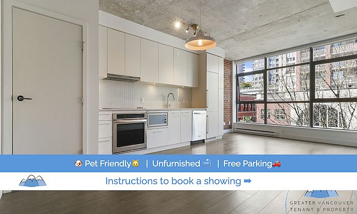 We are offering an unfurnished 1 bedroom/1 bathroom condoin New Westminster. The home is located on the 4th floor. Other great features include kitchen high-end KitchenAid and Blomberg appliances (fridge, microwave, stove, dishwasher), laminate flooring, in suite washer & dryer, heritage-style brick wall, 9-foot ceilings, large windows with city views, and approximately 615 square feet of living space. There is 1 parking spot included.