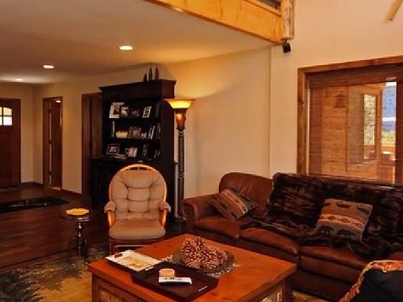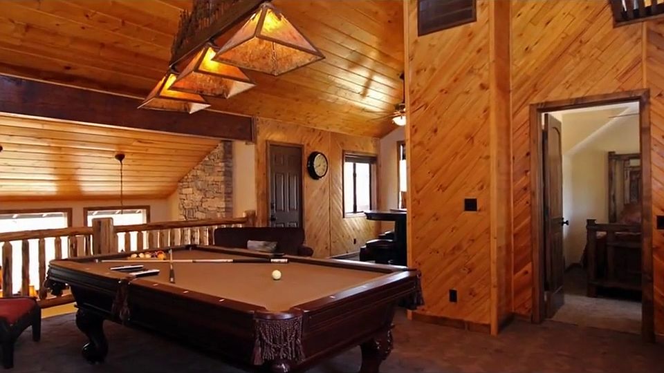 Central location on this one-of-a-kind, fabulous custom, mountain home. This beautiful home features gorgeous wooden floors, massive rock fireplace, spacious living room and kitchen setting. Custom windows which offer a bright and light atmosphere, upstairs family room with pool table and loft area, a wonderful master bedroom with open master bathroom with an attached private office or arts and crafts room, with views of the treetops. This home also features a gourmet style kitchen, with gorgeous custom granite counter tops, upper-end stainless steel appliances and dining area attached. High beamed ceilings, log handrail accents, custom mountain log style furniture, custom fixtures and lighting. Custom bathroom cabinets, granite and lighting fixtures, upper end carpet and flooring throughout. This home has multiple outdoor decks for enjoying our beautiful Big Bear weather. Driveway is expansive and capable of accommodating many vehicles. Perfect for a vacation rental home.