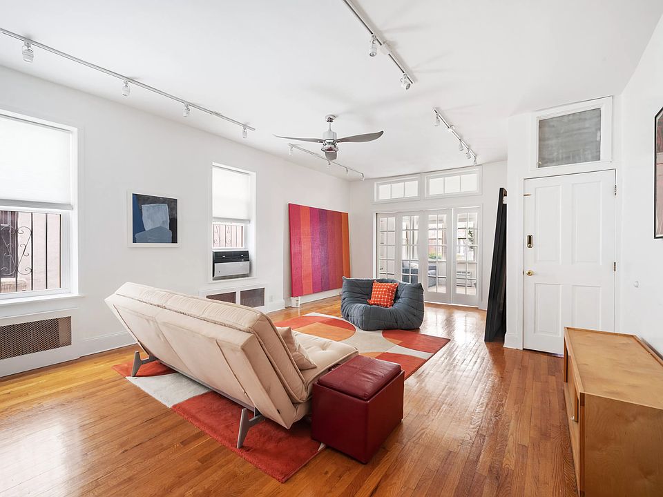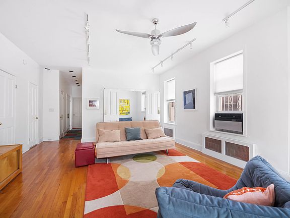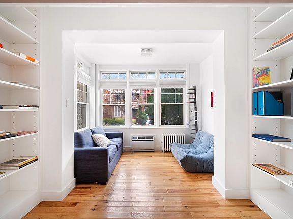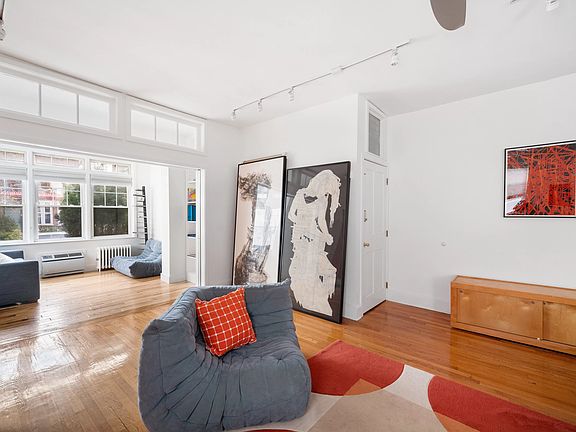 Airy and Open, meticulously updated from basement to roof, including sidewalk and driveway! High quality, artful renovations completed, including built-in shelving, outfitted closet, and unique updates with colorful accents distinguish this house from most others. Spacious & flexible 2-Family brick house, currently used as a 1-Family. Easily adaptable to your needs. More than 3000 sq ft of modernized living space. Freshly painted throughout. Go up the stoop to enter the spacious, sunny parlor floor. Front vestibule and foyer lead into the living room, abutting the sun room. Light streams through the large windows and transoms. Living room and sunroom, separated by see-through pocket doors, preserve the light and feel of open space. The long parlor-floor hallway, flanked by many storage cabinets and an ample walk-in closet outfitted with a double tier automated clothing conveyor serve as an entryway to a large spa bathroom and extensive master bedroom suite with additional closets and shelving and an entry to a back patio. Easy to reinstate the first floor kitchen, virtually staged for your imagination. Gas and water connections capped in place. Exposed brick wall and new skylight lead to the second floor. Light streams in from the front facing balcony adjacent to the living room with original hardwood and parquet floors. 2-3 bedrooms, a separate dining room, a windowed kitchen with stacked washer-dryer, dishwasher, wood cabinets, black granite countertops and colorful tile accents enhance the contemporary vibe of the second floor. The fully finished basement features a large, open and inviting "rec room", perfect for entertainment, parties, a gym or work-at-home space. The half bathroom, windows, closets, a second washer-dryer and brightly painted pipes all add to the functional appeal of this floor. Whether it's a 1-family or a 2-family, you'll love this joyful house and appreciate its outdoor spaces, driveway, and garage!